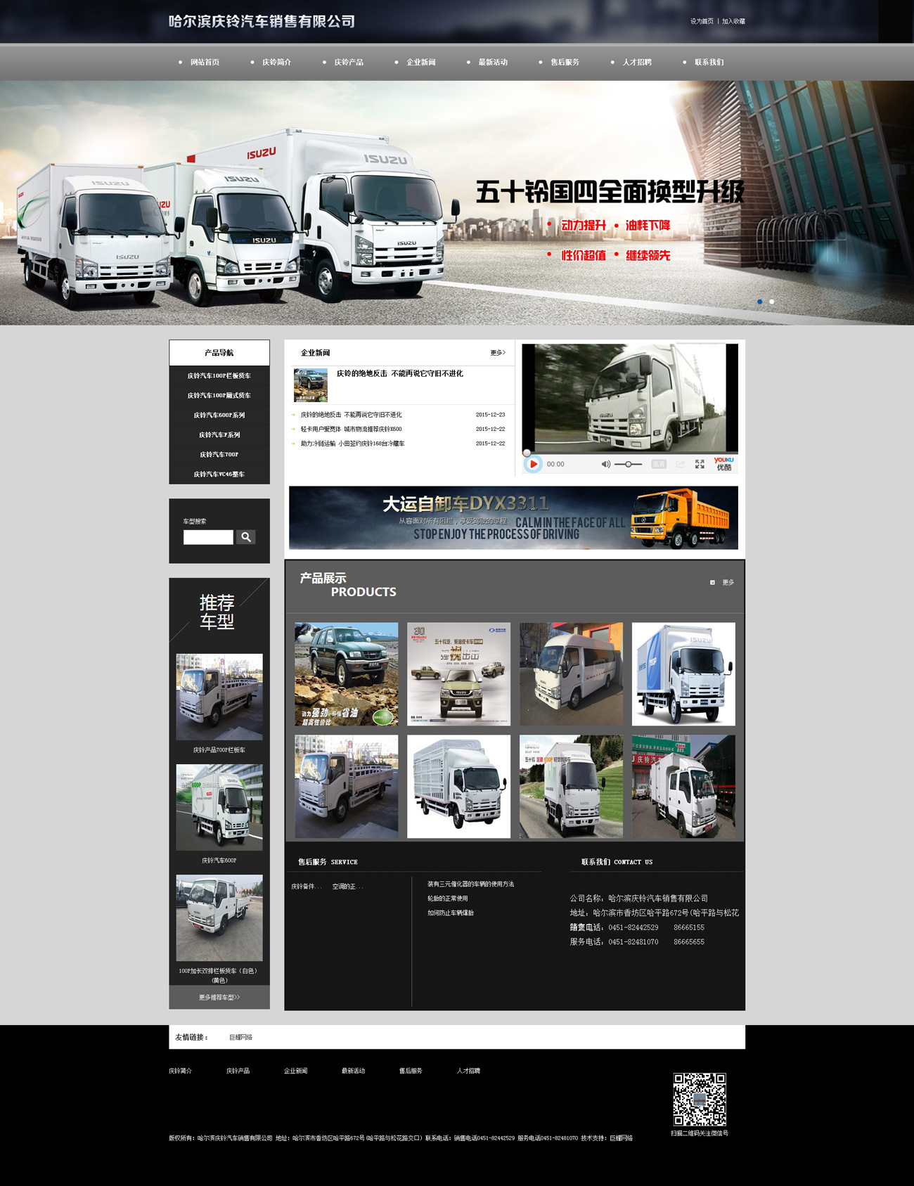 哈爾濱慶鈴汽車銷售有限公司是慶鈴汽車股份有限公司授權(quán)的黑龍江地區(qū)一級代理商,是集整車銷售、配件銷售、售后服務(wù)、信息反饋四位一體的綜合性汽車銷售服務(wù)企業(yè),專營五十鈴系列商務(wù)用車。哈爾濱慶鈴汽車銷售有限公司是慶鈴汽車股份有限公司授權(quán)的黑龍江地區(qū)一級代理商,是集整車銷售、配件銷售、售后服務(wù)、信息反饋四位一體的綜合性汽車銷售服務(wù)企業(yè),專營五十鈴系列商務(wù)用車。